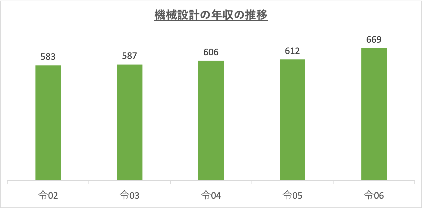 厚生労働省の令和6年度賃金構造基本統計調査によると、機械設計の平均年収は、42.2歳で669万円ほどとなっています。